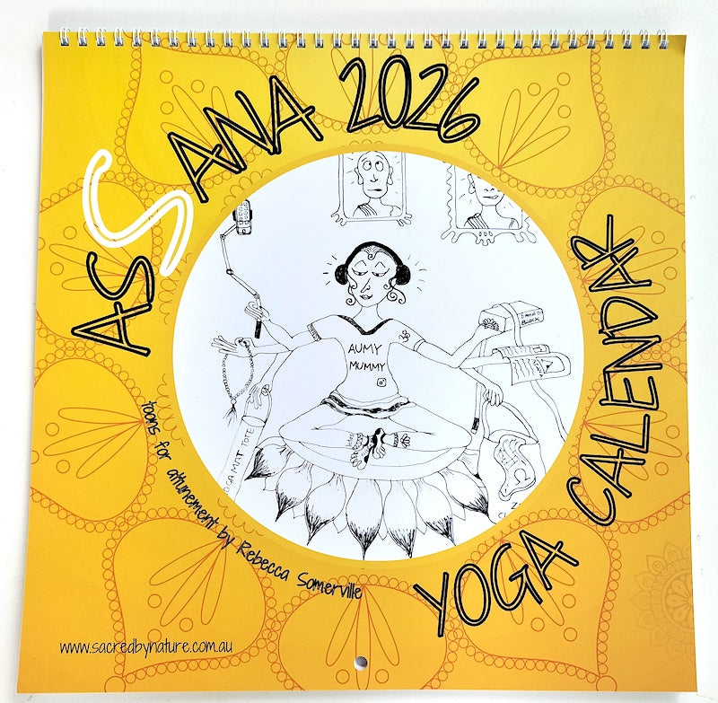 There's nothing else like it. If you love yoga or know someone who does, ASSANA 2026 includes 12 original yoga 'in jokes' and a guaranteed chuckle to keep it real. The calendar features a moon guide and generous space to add important events and dates. 2026 is my first ever print run so there are only 50 copies left of the first edition.